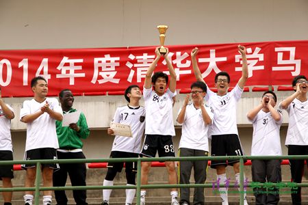 环境学院4月23日电4月17日下午,环境学院男子足球队在历经两个多小时激战后,以1:0战胜航天航空学院摘得2013-2014学年清华大学“马约翰杯”男子足球总冠军。这是环境学院四年内第三次夺得马杯冠军。