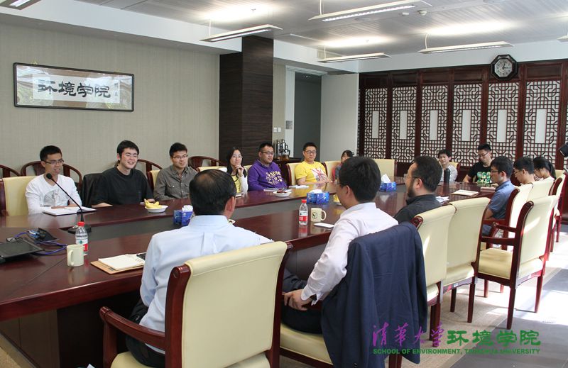 座谈开始,刘建国教授向同学们亲切地介绍了当年同在清华环境系固体所读博的“学弟”,拉近了同学们与席北斗学长的距离。贺克斌院长对席北斗的到来表示热烈欢迎,并希望同学们通过与学长面对面,能更加明确自己学习和努力方向。