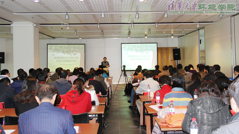 清华环境学院12月28日讯 (记者 苏珍爱,刘莉) 12月27日下午至28日上午,环境学院在节能楼东一厅召开2013年工作交流与发展研讨会,全院90余位教职工参加会议。