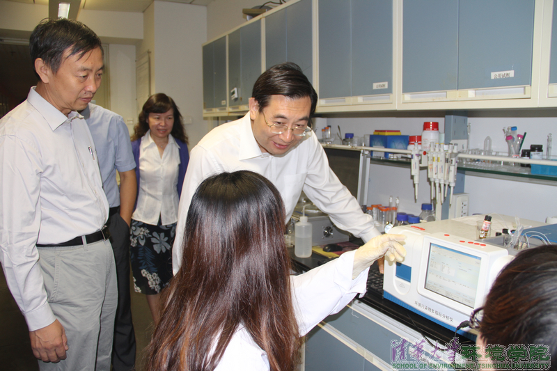 图为胡和平走访环境学院实验室并了解学院情况。苏珍爱 摄