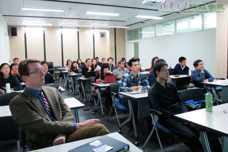 清华环境学院11月26日电 (通讯员 周海燕) 11月26日下午,美国环境保护署(EPA)环境科学家杨杰夫博士(Y. Jeffrey Yang)和麦克·特里比博士(Michael E.Tryby)做客环境学术沙龙第108期,分别作题为《气候和土地利用变化对城市基础设施规划和设计的影响》(Climate and Land Use Change Impacts on Urban Infrastructure Planning and Design)和《配水系统中基于定位传感器和执行器的规划模型》(Planning Models for Locating Sensors and Actuators in Water Distribution Systems)的学术报告。学院约50余名师生听取了报告。