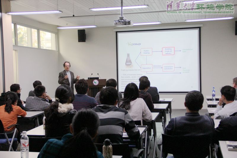清华环境学院10月22日电 (通讯员 郭泓利,张玲) 10月19日下午,清华环境学术沙龙第96期在环境节能楼122举行。来自法国里昂环境催化研究所(IRCELYON)的两位教授克劳德•德斯科瑞(Claude Descorem)和克劳德•米罗达特斯(Claude Mirodatos)做客此次沙龙,分别以《水资源、水污染及所面临的挑战和前景》(Water: resources, pollutions, challenges and perspectives)和《生物质热解或催化热解产生物质燃料等》(Strategies for biomass valorisation towards bio-fuels and chemicals via thermal and/or catalytic pyrolysis )为题,为环境学院约50名师生作学术报告。此次沙龙由环境学院教授李俊华主持。