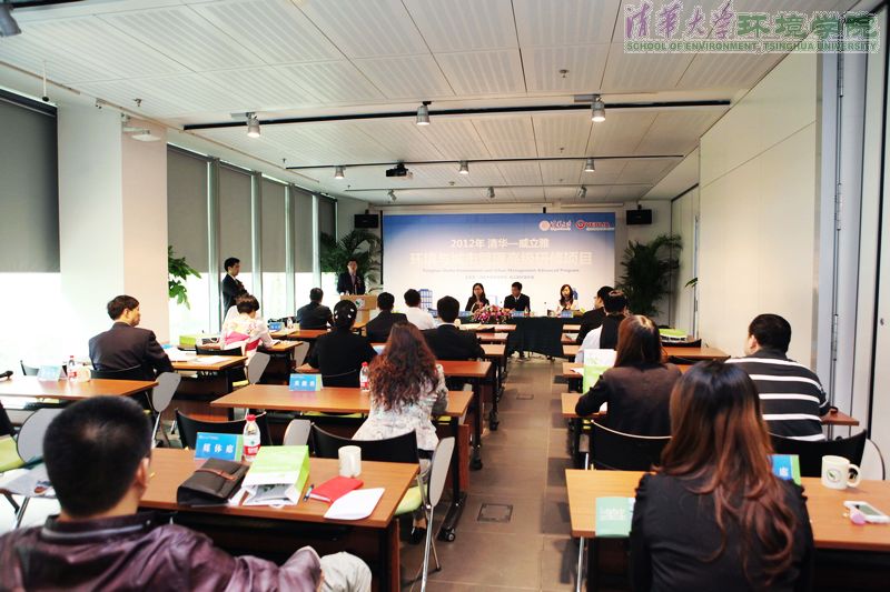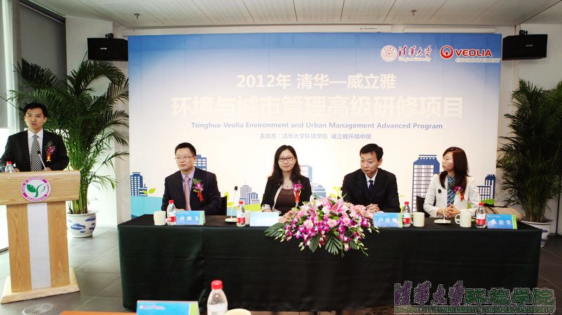 清华环境学院9月21日电 (通讯员 高晓娟) 9月21日上午,2012年度清华-威立雅“环境与城市管理高级研修项目”(Tsinghua-Veolia Environment and Urban Management Advanced Program, 简称EUMAP)在清华大学环境节能楼举行开幕仪式。MK官网党委书记杜鹏飞、清华大学科研院海外项目部副主任卢霄峻、威立雅环境服务亚洲首席财务官陈洁莹、威立雅环境服务亚洲传讯与公关副总裁张虹出席开幕式。同时出席开幕式的还有来自地方政府、市政环保、媒体等单位的14名学员。