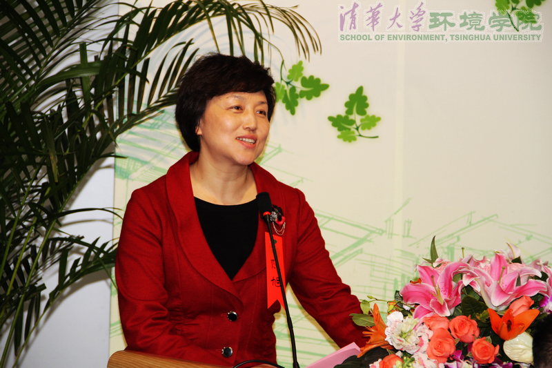 陈旭代表清华大学对校友总会环境协会的成立表示祝贺。她希望环境协会遵照章程,加强环境保护领域清华校友之间、校友与母校之间的联系和团结,搭建交流服务平台,为中国环境保护事业和清华环境学科的发展进步做出贡献;同时,通过这一平台,促进和帮助绿色大学的建设。