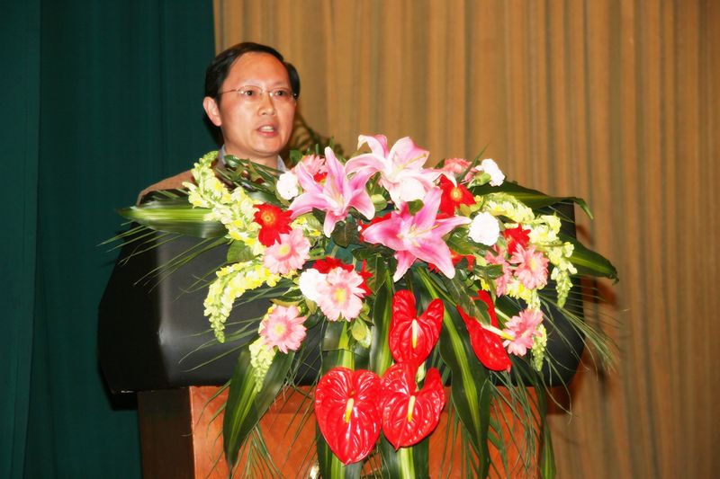 图为环境学院院长余刚颁奖后代表高等院校发言。