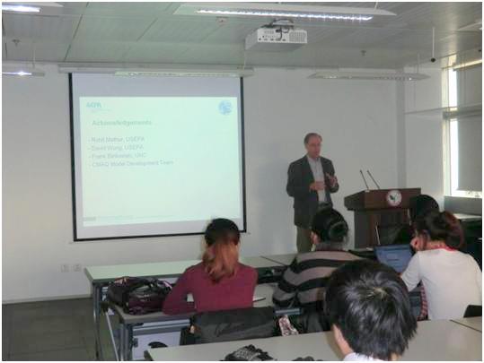 12月12日下午3:00,由环境学院学术委员会主办的第65期环境学术沙龙在环境节能楼533举行。美国环保署大气模型研发部主任约翰逊·普雷姆(Jonathan Pleim)教授做了题为“2-way Coupled WRF-CMAQ Modeling for Hemispheric to Mesoscale to Urban Scale Air Quality Modeling”的学术报告,详细介绍了美国环保署新开发的大气模型WRF-CMAQ的构架、机理、测试情况等。WRF-CMAQ是气象与化学双向耦合的模型,增加了气溶胶对于短波、长波的直接影响、臭氧对于长波的直接影响和气溶胶对于云雨生成的间接影响,从而使空气质量模拟更接近现实。报告结束后,大家还同普雷姆教授就相关问题进行了进一步的探讨。