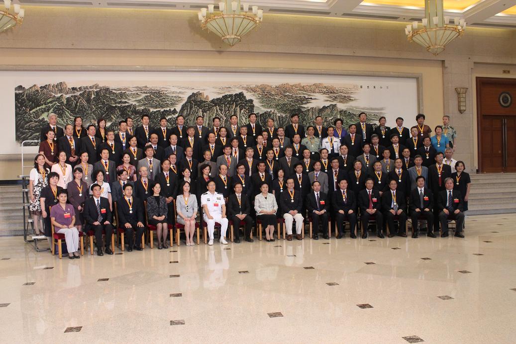 图为国家领导人与一百位获奖教学名师合影。