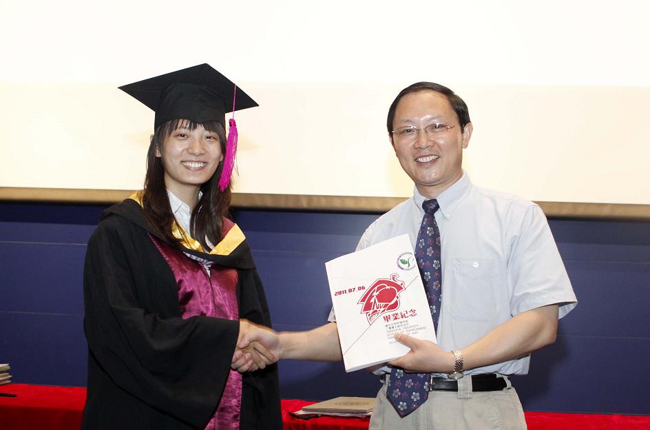 2011年7月6日下午3:20,清华大学中意环境节能楼报告厅,张晶口中一直念叨着的环七年级同学三五成群地来到这里参加毕业典礼。在此迎接他们的,是清华大学学术委员会主席钱易院士、清华大学学位评定委员会环境科学与工程分委员会主席郝吉明院士,校友代表、中持(北京)环保发展有限公司董事长许国栋,环境学院院长余刚,党委副书记刘建国,副院长蒋建国,党委副书记刘文君,院长助理刘书明,副院长左剑恶,水环境保护研究所所长、学术委员会主席黄霞,饮用水安全研究所所长杨宏伟,地下水与土壤环境研究所所长张旭,大气污染与控制研究所教师代表蒋靖坤,固体废物控制研究所所长王洪涛,环境工程设计研究所教师代表、院长助理王玉珏,环境化学研究所所长张彭义,环境生物研究所所长王慧,环境系统分析研究所所所长曾思育,环境管理与政策研究所所长常杪,学生工作组组长刘艳臣,环七年级级主任、环71班班主任温宗国,环72班班主任许嘉钰,环七年级辅导员张晶,环七年级辅导员林朋飞,以及前来参加典礼的亲朋好友们。