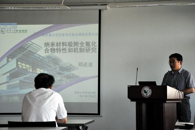 邓述波老师就“纳米材料吸附全氟化合物的特性和机制研究”做了报告。他表示,全氟化合物是环境污染和控制的前沿问题,本研究将阐明碳纳米管等纳米吸附剂吸附典型PFCs的吸附特性和解吸规律,并研制出能高效去除PFOS和PFOA的高效纳米吸附剂。