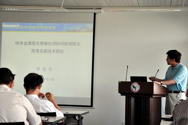 李俊华老师汇报了“纳米金属氧化物催化剂协同脱硝除汞原理及新技术研究”的成果。他提出要在SCR氧化的基础上开发脱硝联合脱汞技术,并对低温SCR抗中毒机制进行研究。