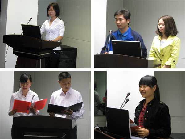 图为各班答辩代表进行风采展示