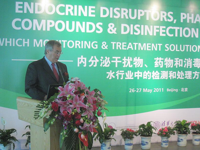 微量有机污染物包括多种化合物,例如由人类活动排放入废水中的清洁剂、杀虫剂、增塑剂、激素和药物(例如避孕药物)。这些化合物比通常的污染物小得多,传统的废水处理场无法去除,因而被排放到河流中,也会出现在饮用水中。这些化合物同时又被称为内分泌干扰化合物(EDC),即便是在水中含量甚微的情况下也会对水生生物和人类健康有害。例如日渐突出的欧洲男性不育问题就与此相关。为应对该问题,包括美国、法国、德国、澳大利亚和中国在内的全球诸多科研机构都在研究新型的微量有机污染物去除工艺。清华大学威立雅环境服务联合研究中心最近也组建了科研小组来研究这项重要的卫生问题。