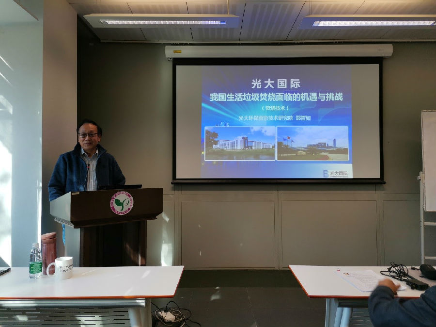 邵哲如先生首先在分析我国生活垃圾处理所面临的突出问题及焚烧法作为垃圾处理最终方式的优势性基础上,详细介绍了光大国际在焚烧领域所开发的技术体系。光大国际自主研发、自主制造,逐步形成模块化、超负荷能力强、炉排片寿命长、吨垃圾发电量高的焚烧设备产品,日处理量高达1000吨/天,并展示了其前沿技术在国内外的应用情况。在分享高参数焚烧技术效益优势性的同时,邵哲如先生重点分析了高参数运行过程中的风险控制措施。随后,还介绍了光大国际在飞灰等离子熔融技术和烟气净化技术方面的研发与应用工作。讲座结束后,在场师生踊跃提问,气氛热烈,与邵哲如先生进行了深入的沟通与交流。