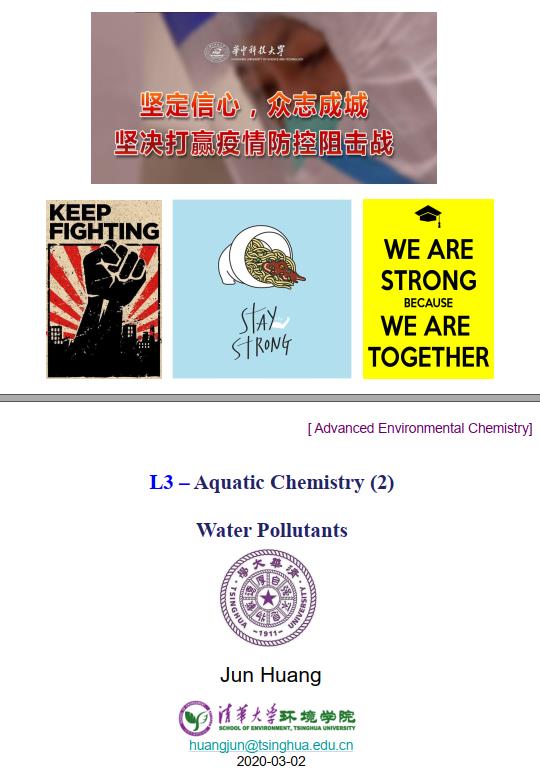 课程第一张PPT,黄俊老师就展示了华中科技大学抗击疫情的海报,一下子拉近了清华与华科师生的心理距离。旁听课程的华中科技大学陈静老师课后专门留言说,“请允许我在群里表达一下我的感动,这是清华环境学院黄俊老师的PPT。我们今天开始第一节课,PPT的第一页就令我非常地震撼和暖心”。