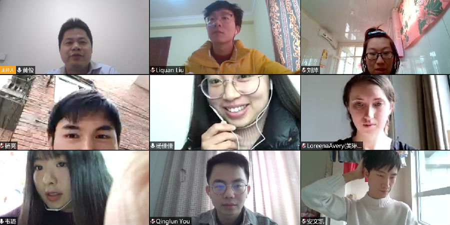 12点15分,三课时的全英文课程顺利完成。临下课前,黄老师还专门征求同学们的意见。华科的同学纷纷表示,与清华师生相约“云端”一起上课,大家都很兴奋,通过网络上课的感觉也很不错,很感谢在抗疫的特殊时期清华能以这种方式及时共享课程。其中,杨佳佳同学说,“这也是我第一次体验全英文的授课模式,上课之前我很担心自己会跟不上,黄老师标准的口语让我放松很多。课程结束老师还细心地询问我们有没有什么问题和建议,这让我们都很感动。”韦璐同学说,“突如其来的疫情让湖北武汉成为大家最关心的地方。很感谢清华能提供给我们一个一起学习的机会,让我亲身参与了这个特别的线上课堂,体验不同的教学方式。这些来自不同领域的关心和帮助,让我相信在我们的共同努力下,真正的春天很快就会到来!”杨亮同学则表示,“自疫情发生以来,深刻地感受到了社会各界对武汉、对华科的支援。一方有难,八方支援,团结一心,共克时艰,等着病毒远去,春暖花开,希望大家再会江城。我们在这里等你们!”留学生Loreena Avery也表示,“That is a wonderful class. Thank you, Laoshi(老师)”。一同上课的清华学生也对这种模式表示了赞赏。杜柔佳同学说,“这堂课让我深刻感受到华科同学与我们站在一起,全国人民对战胜疫情都有着必胜的决心。”