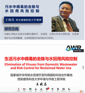 王晓昌教授结合当前新冠肺炎疫情防控对病毒的关注,做了题为“生活污水中病毒的去除与水回用风险控制”的报告。他系统介绍了病毒的主要来源,水处理工艺各个单元对病毒的去除作用,强调了在污水处理和水回用过程中重视病毒风险控制的重要性,并分享了对病毒控制目标和方法的系统思考。