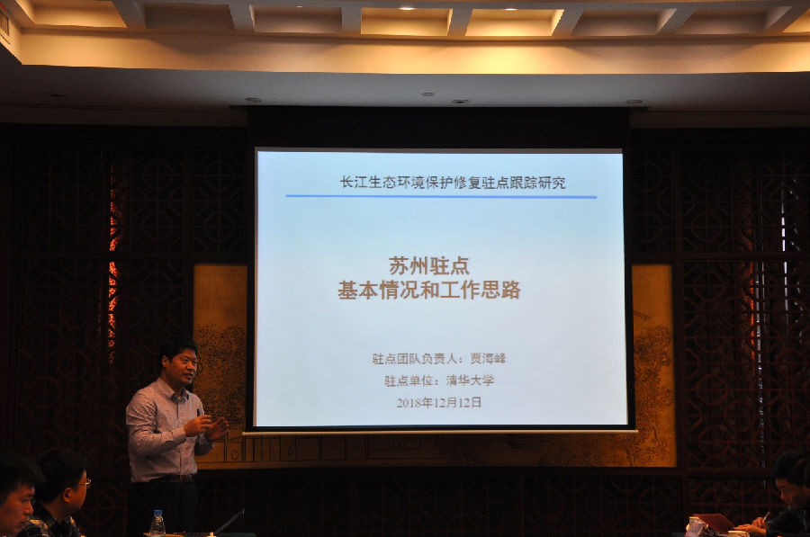 苏州驻点工作组负责人清华大学贾海峰教授从驻点背景、水专项主要工作、驻点工作安排等方面详细介绍了苏州市长江驻点跟踪研究工作思路,要补短板、解难题、创亮点为苏州市生态环境保护护航。苏州市住建局、工信局、农业农村局、水务局、生态环境局主要负责同志补充汇报了已经开展的相关工作、问题和需求。