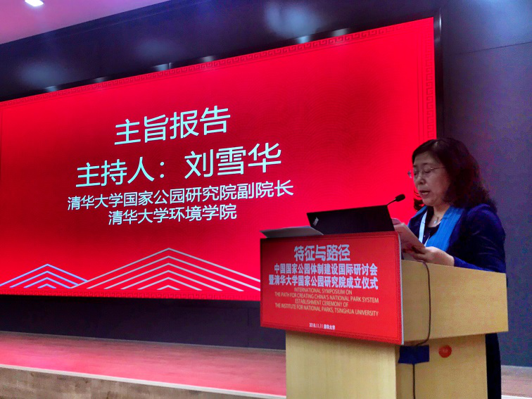 成立仪式当天同时还举行了中国国家公园体制建设国际研讨会。会议以“中国国家公园特征与路径”为主题,邀请国内外知名学者、国家公园相关政府部门、国家公园体制试点单位、国际生态环保组织等,分享智慧、开拓思路、凝聚共识。刘雪华受邀主持了一场研讨会主旨报告。会议先后讨论了中国国家公园体制建设的难点要点、面临的机遇和挑战、中国国家公园的特征、大学和国家公园的伙伴关系、中国国家公园体制建设的六项建议等多个议题,取得了圆满成功。