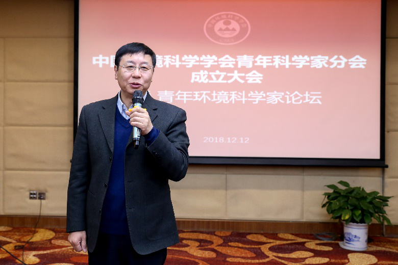 中国环境科学学会青年科学家分会首任主任刘毅教授主持会议