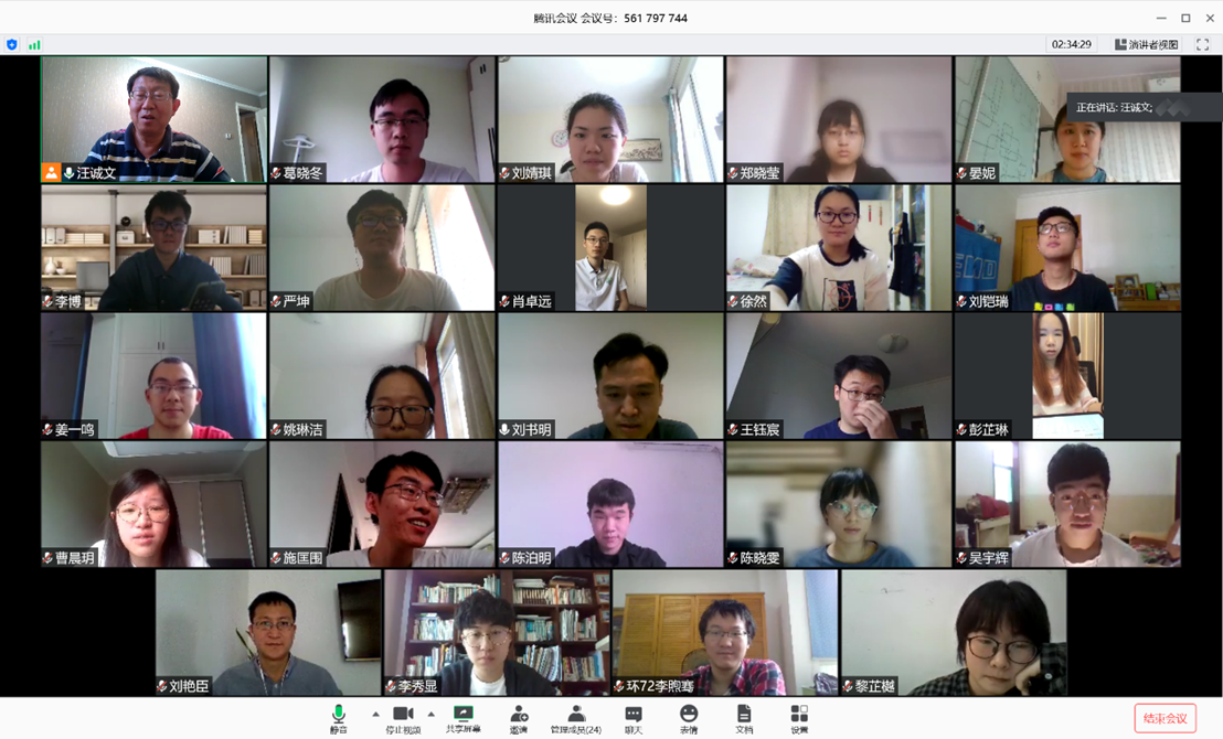 9:30,老师们已经进入了事先准备的腾讯会议室,等待着同学们的到来。为了今天这场考试的顺利进行,三位老师和助教依据《在线教学指导专家组关于开展远程期末考试的建议》和《远程期末考试培训》内容进行了多次严肃的讨论,于5月25日课堂上与同学交流考试方式,并于5月27日与同学们一同模拟了考试的具体流程。