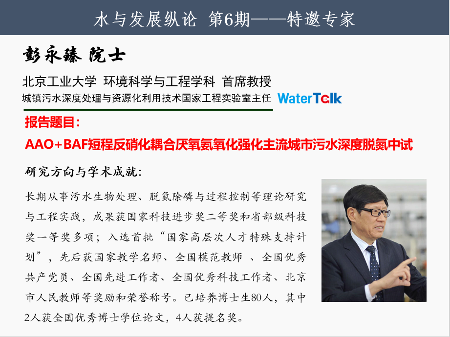 水与发展纵论自成立以来,钱易院士、王晓昌教授、王金南院士、夏军院士、郝吉明院士、王浩院士和彭永臻院士等七位专家的报告为水环境领域提供了思想盛宴,得到国内外专家学者和高校师生的广泛关注。