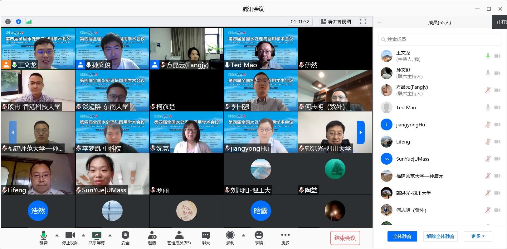 中国城镇供水排水协会会长章林伟、上海市政工程设计研究总院总工张辰、西安建筑科技大学教授王晓昌、新加坡南洋理工大学教授刘雨、中国人民大学教授王洪臣、爱尔兰都柏林大学教授赵亚乾和美国佐治亚理工助理教授谢兴等分别作了精彩的特邀报告,内容涉及海绵城市建设、雨水管渠与内涝防治、再生水利用的生态安全保障策略、未来市政污水处理模式、我国城镇污水处理低质低效原因、人工湿地污水再生利用、区域强电场处理技术等多个方面,线上和线下讨论气氛热烈。