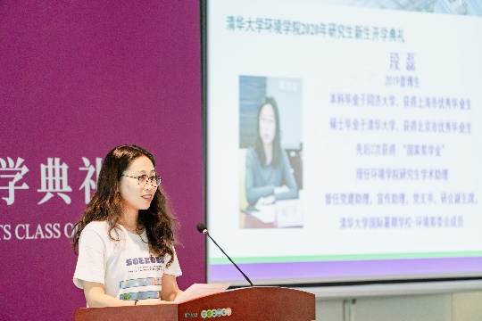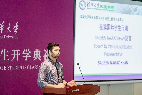 2019级博士生段磊作为在读研究生代表,向新生讲述了自己成长的心路历程,希望师弟师妹们在今后的日子里,可以在环境学院感受到“家”的充实感和归属感,传承优良“家风”,成为环境领域一股奔涌的“后浪”!来自巴基斯坦的2019级博士生杨进(SaleemNawaz Khan)作为在读国际学生代表,讲述了自己进入清华后的成长与感悟。他谈到自己见证了疫情期间中国人的决心、承诺和自律,希望新生能珍惜与不同文化背景的同学在一起学习、生活的经历,在生活和学习中充分把握机遇。
