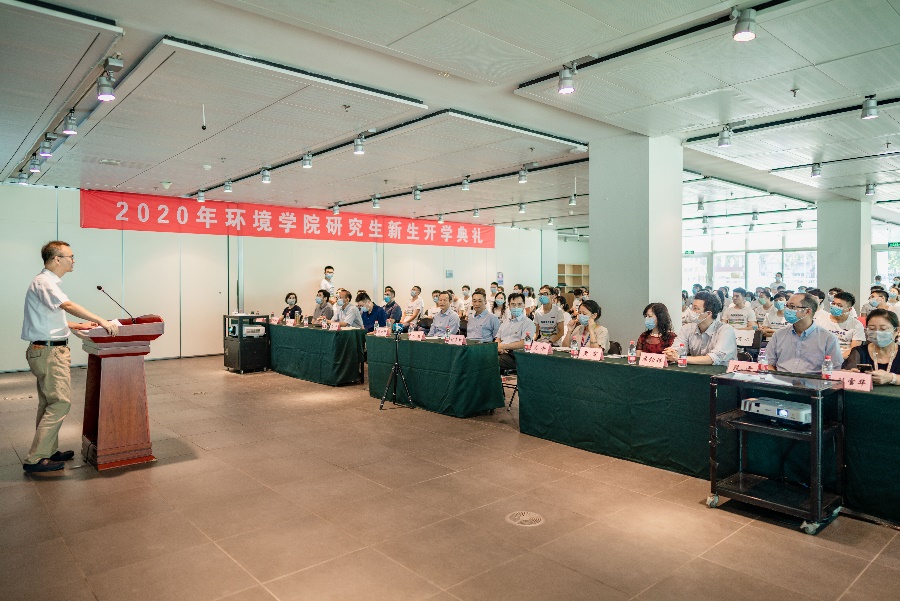 典礼最后,院长刘毅表达了对新生的寄语。他对同学们的到来表示欢迎,向同学们在疫情的特殊时期克服重重困难、跨越层层门槛、坚持学习的精神表达敬意。当前环境学院正在完善研究生学术评价标准,破除“五唯”,将实行更加严格的研究生全过程管理。希望同学们珍惜来之不易的学习机会,坚持不懈,“苟有恒,何必三更起五更眠;最无益,莫过于一日曝十日寒”,做好接受严格科研训练的准备,做好从本科生上课学习向研究生解决问题的状态转变。培养严谨作风与批判精神,提升洞察力及执行力,做出有影响力的新知识、新技术、新方法,攀登科学高峰,培养学术志趣,拓展研究前沿,推动解决区域性和全球性环境问题,获得陪伴终身的宝贵财富。最后,刘毅老师祝愿同学们在研究生期间创造丰硕成果、收获精彩人生。