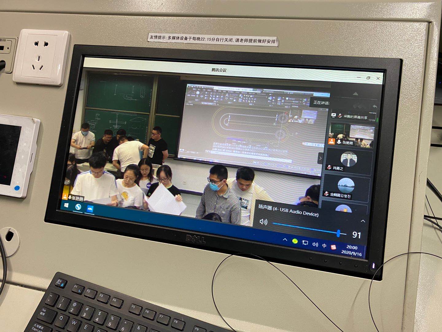 吴烨老师的研究生全英文课《空气污染控制技术》共有18位学生选课,其中5位来自美国、俄罗斯、尼日利亚和爱尔兰的国际学生通过腾讯会议线上参与课程。开课前,吴老师及助教进行了多次实地测试以保证融合式教学顺利进行。为了让线上学生身临其境地参与课堂,自备了可旋转视角的摄像头并配合学院的音频设备,在线下同学发言时对其声音及画面进行捕捉。