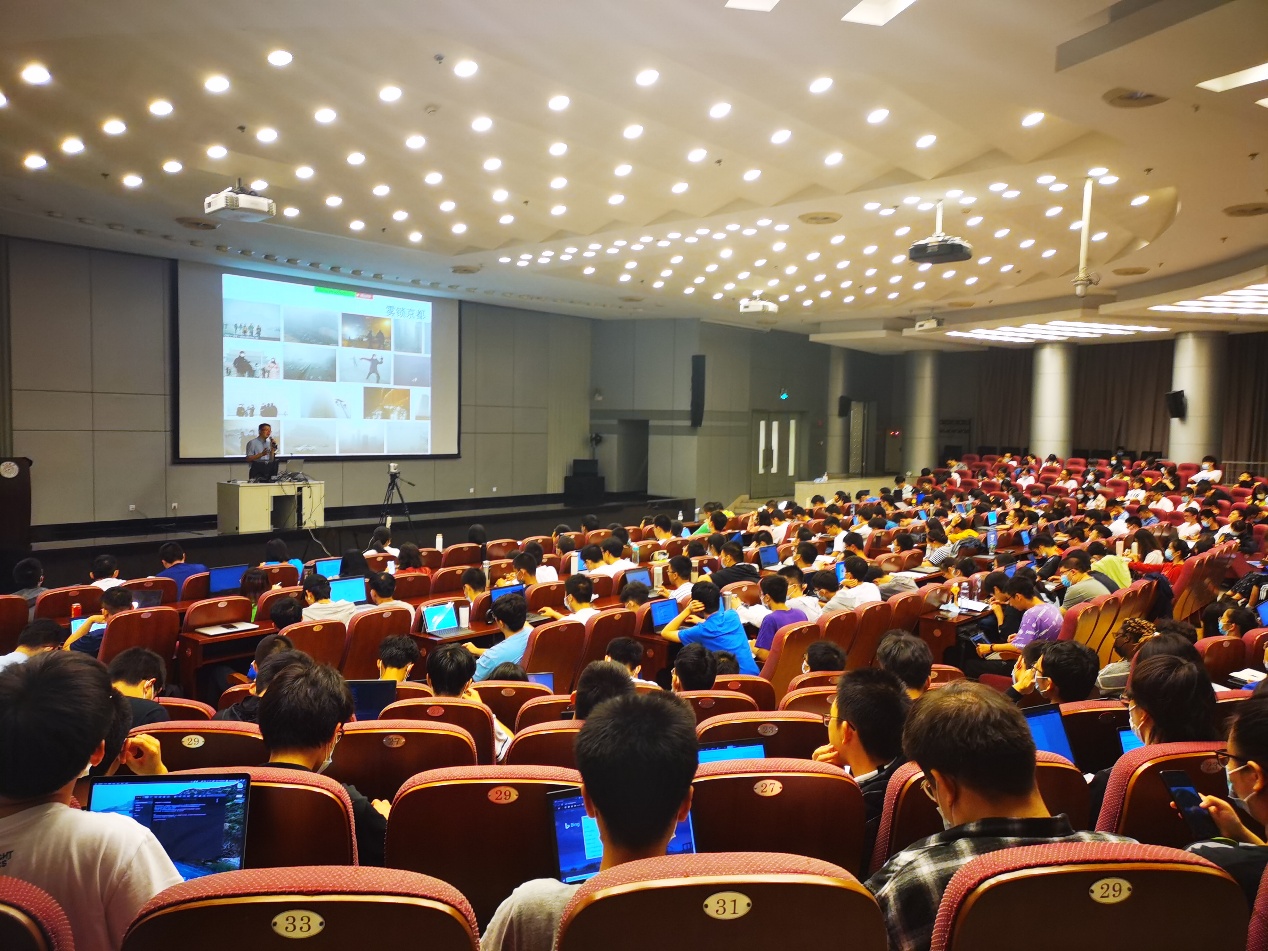全校性选修课《环境保护与可持续发展》共有400人选课,其中33位学生线上上课。面对选课学生名单变化、新生联络信息不足等问题,助教团队尽最大努力在课前联系到了所有在海外的学生,确保他们能顺利线上听课。经过多次前期测试与准备,杜鹏飞老师在主楼后厅顺利开启融合式教学。课后助教还收集了线上同学意见,根据反馈继续进行优化调整。
