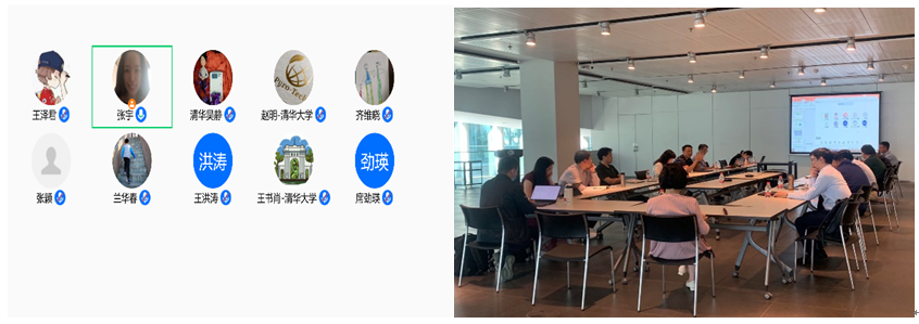 环境学院研究生教育研讨线上会场(左)和线下会场中意环境节能楼东一厅(右)