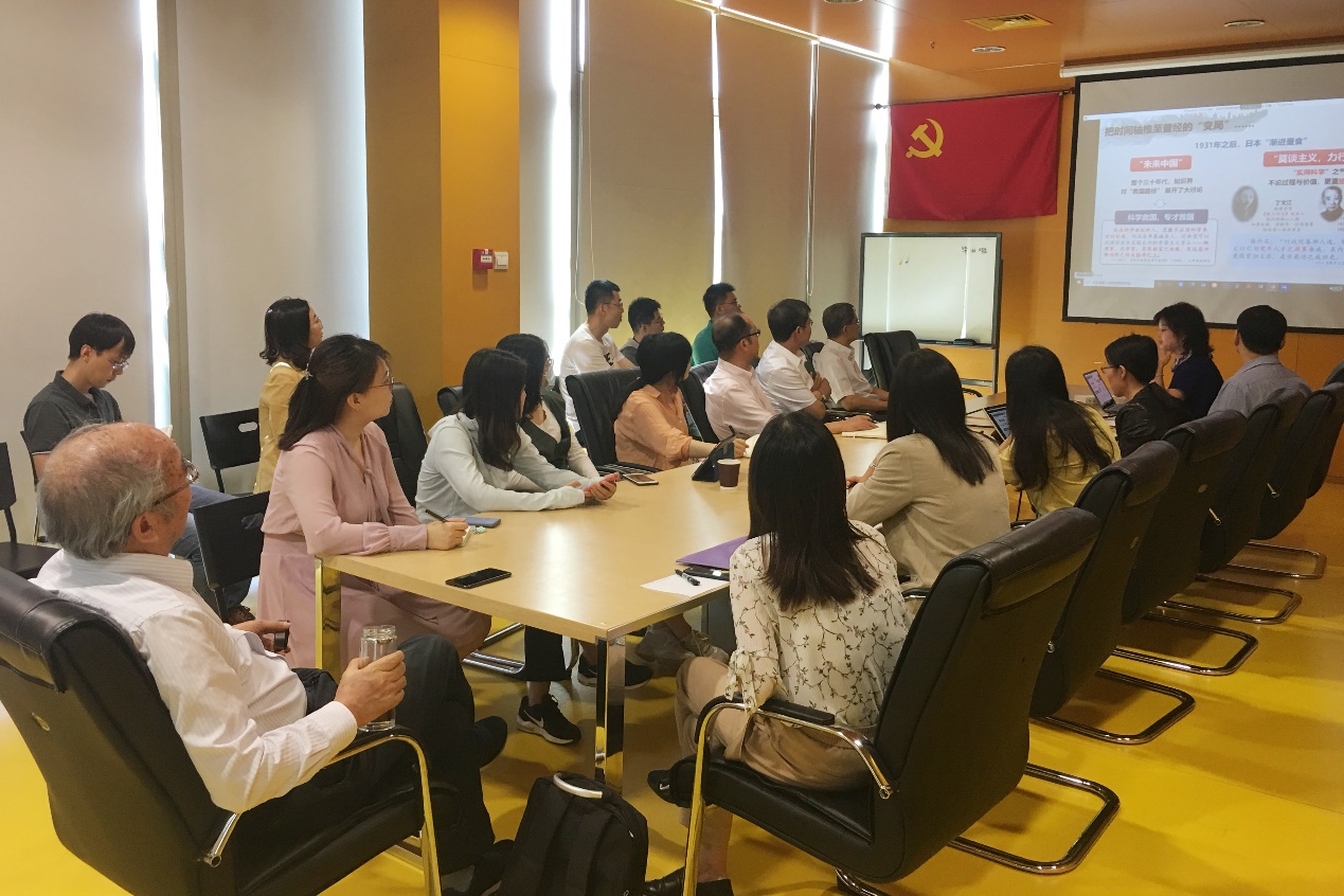 李蕉老师首先指出应对新冠疫情是我国今年面临的一场大考。在这样的时代变局下,教育工作者要深刻领会党和国家对思想政治教育提出的新的指导意见,要在变局之下把思想政治教育做到举措入微、效果入味。报告回顾了建国前我国的广大科学工作者如何将科学与思政进行有机结合的事例,讲述了高士其、艾思奇、董纯才、于光远等老一辈科研教育工作者在研究与教育中注重政治指引和思想精神弘扬的事迹。前辈们“注重民众的科学普及”、“做人民需要的科学”等精神使支部成员深受教育。