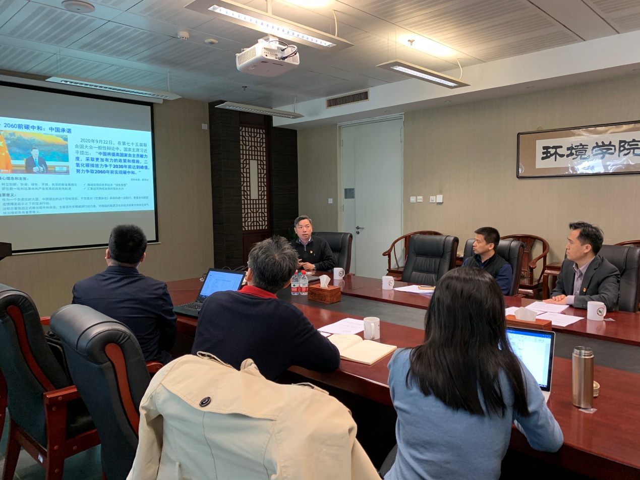 辅导报告结束后,与会人员针对习近平主席的讲话精神进行了思想交流,针对我国碳中和目标对环境学科发展的影响展开了深入讨论。