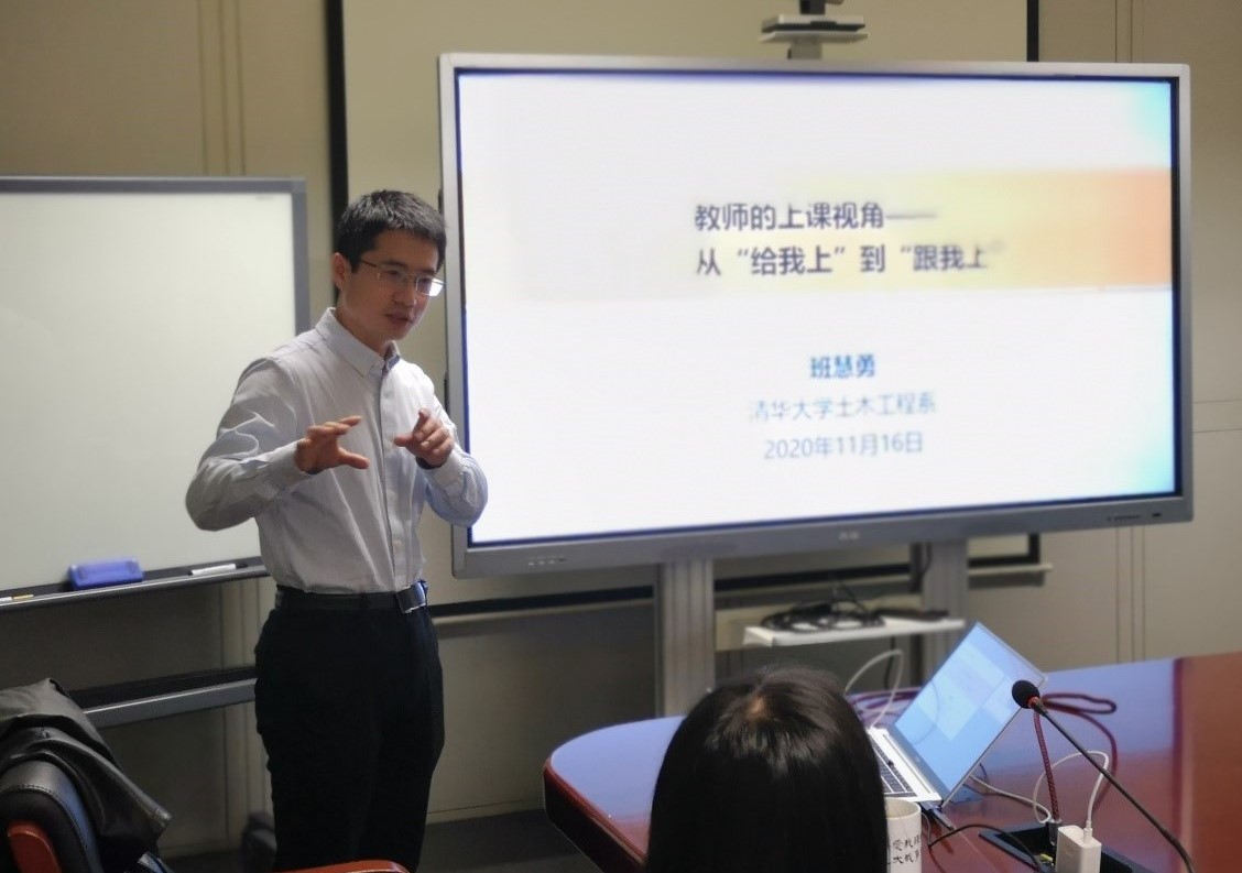 会上,班慧勇主要围绕“上什么”、“怎么上”两个部分为大家进行了经验分享,他对如何在一堂课中体现“三位一体”的教学理念进行了详细的阐述,并结合自身教学经验对如何将知识、能力和价值有机融合这一问题提出了合理的建议。他强调课堂内容一定要有一个创新点,这就要求老师在备课时要跳出教材、充分结合科研工作,积极寻找课程的亮点,在传授知识的同时,增强课程的应用性与前沿性,此外他还为大家提供了几条切实有效的课堂互动方法。