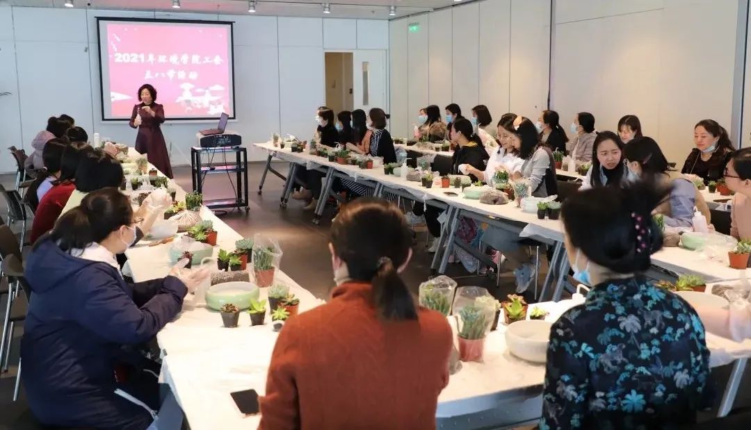 MK官网2021年3月8日电(通讯员 魏欣)在第111个”三·八”国际劳动妇女节到来之际,为向奋斗在教育科研事业的女教师与职工表示崇高的敬意并送去节日的问候,环境学院分工会3月8日下午组织了一场别开生面的“多肉微景观制作”沙龙活动。学院近60名女教职工参加了本次活动。