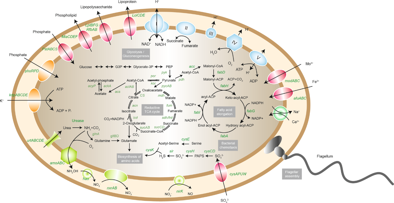 图4 MBR反应器中富集的全程硝化菌Nitrospira细胞代谢示意图