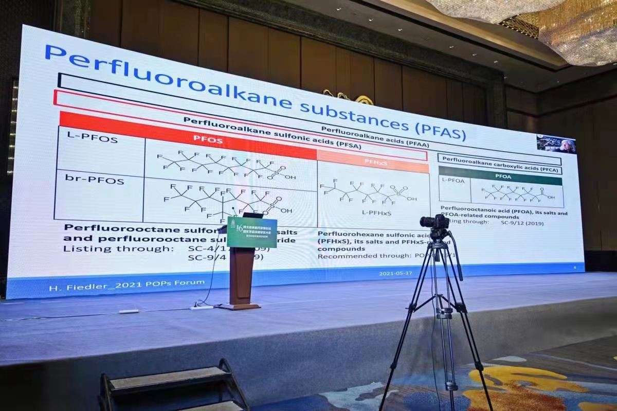 接下来的大会报告由中国环境科学学会POPs专委会副主任、中国科学院生态环境研究中心郑明辉研究员主持。中国环境科学学会POPs专委会委员、南开大学环境科学与工程学院孙红文教授对含氟有机化合物的环境识别与污染控制进行了精彩报告;中国环境科学学会POPs专委会委员、大连理工大学陈景文教授作了题为“新污染物治理与化学品环境风险管理”的报告;中国环境科学学会POPs专委会顾问、瑞典厄勒布鲁大学HeideloreFiedler教授就全氟辛烷磺酸类(PFOS)和全氟辛酸类(PFOA)的全球监测现状在线上作了精彩报告;来自安捷伦科技(中国)有限公司的应用专家杜伟介绍了代谢组学、代谢流整合细胞分析助力污染物环境暴露与疾病的研究。