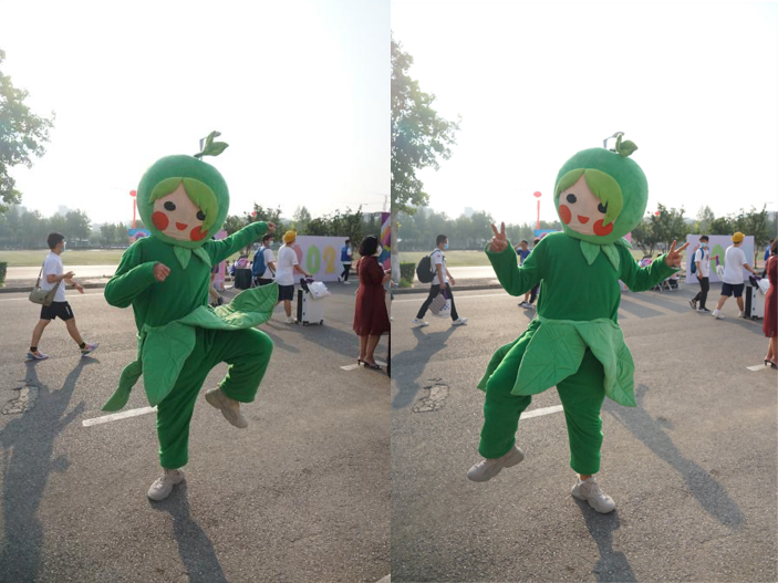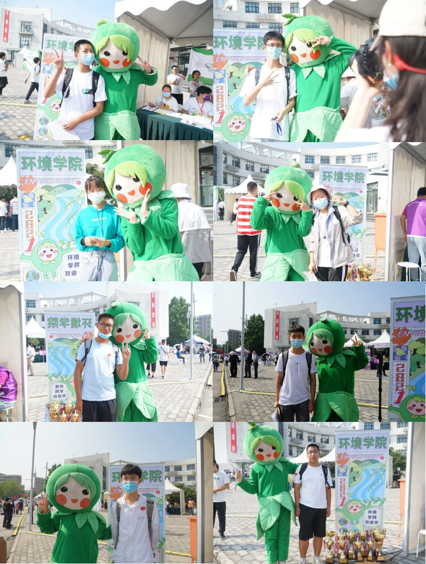 清晨,学院吉祥物环小绿就等候在迎新现场,可爱的形象为新同学带来了温馨与期待。