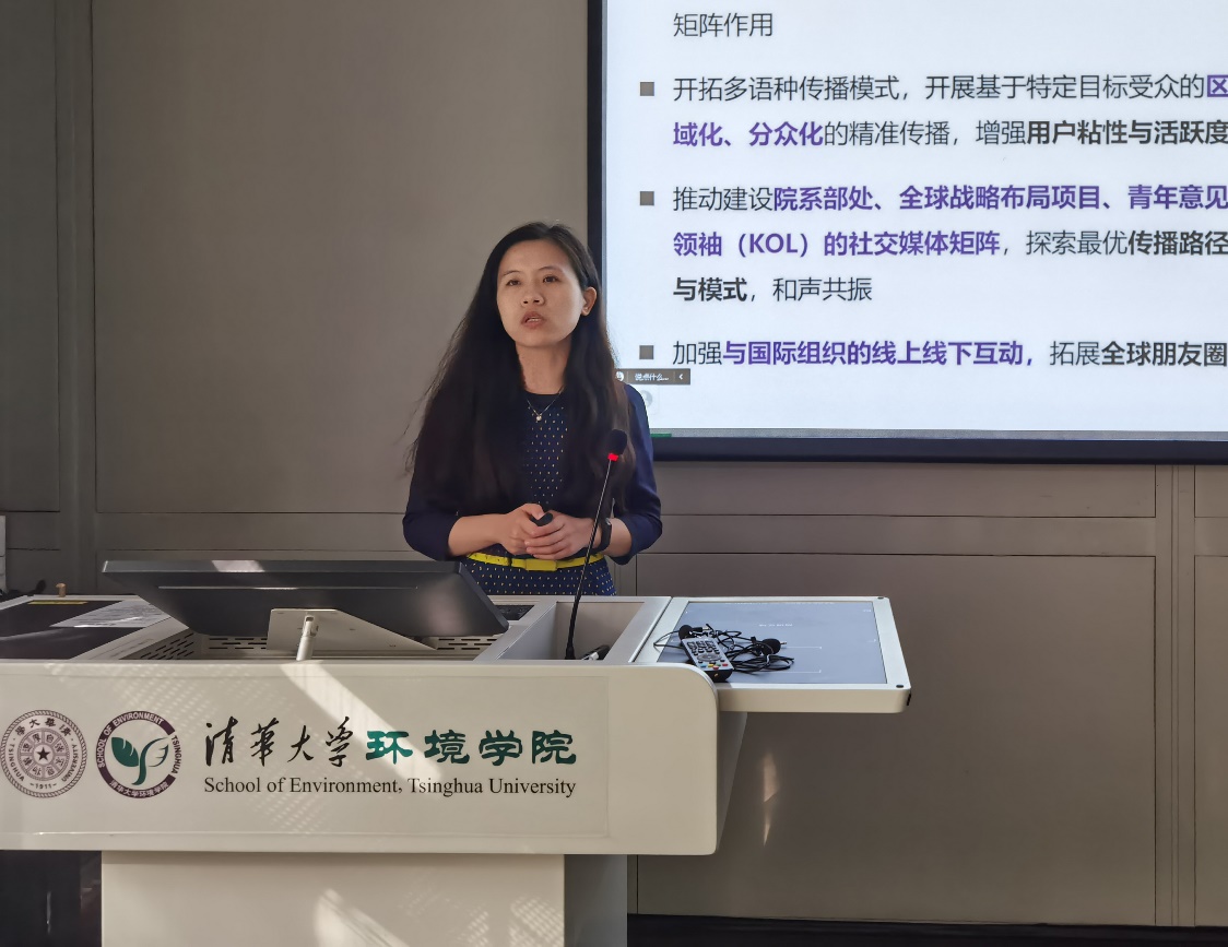 习近平总书记强调,讲好中国故事,传播好中国声音,展示真实、立体、全面的中国,是加强我国国际传播能力建设的重要任务。那清华的全球传播工作在做什么?林源为大家介绍了学校全球传播工作的重点内容。她表示,学校正在以英文新媒体为阵地,建设清华国际社交媒体矩阵;以全球英文直播为载体,创新舆论互动生态;以科研成果和人物为依托,推动科研全球传播;以Z世代青年为主题,培育清华全球传播使者队伍;以清华会客厅为品牌,加强国际人脉和公共关系建设;以英文主页建设为示范,打造对外传播“第一扇窗”;以重点院系为突破口,形成国际传播学科抓手;以全球战略布局为引领,同声共振提高对外传播声量。
