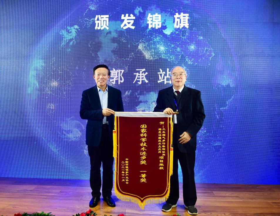 会上,中国环境保护产业协会副会长兼秘书长滕建礼宣读贺信,并由中国环境保护产业协会会长郭承站为工程研究中心颁发锦旗,祝贺“工业烟气多污染物协同深度治理技术及应用”项目荣获国家科学技术进步一等奖。蔡建玮、郝吉明、杜云贵分别为会议致辞,对本次参加会议的专家、来宾表示感谢,肯定了工程研究中心为地方生态环境保护事业作出的重要贡献,并祝贺李俊华教授团队研究项目荣获国家科学技术进步一等奖。