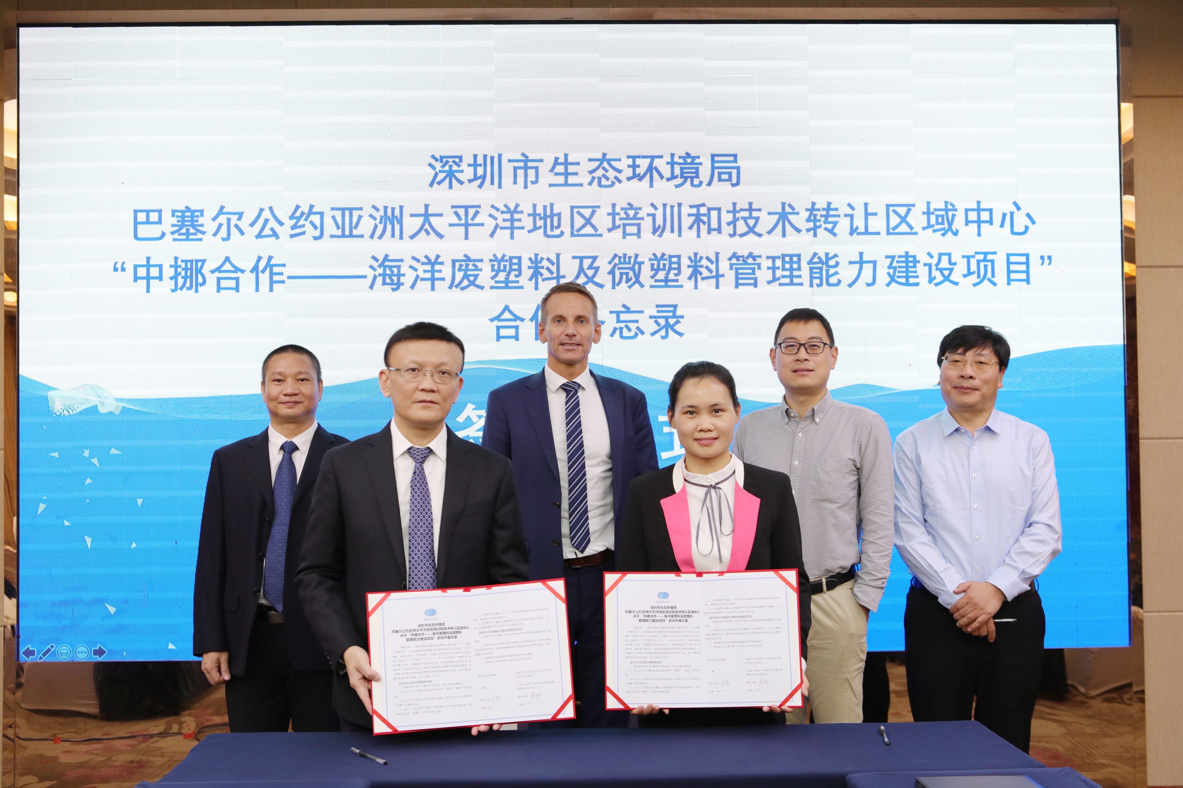 之后,在生态环境部、挪威驻华使馆和所有参会代表的见证下,深圳市生态环境局文忠副局长和亚太中心区域化学品管理室陈源主任(代表亚太中心执行主任、MK官网教授李金惠)签署中挪项目合作备忘录。此次合作备忘录的签署,旨在充分发挥双方优势,在深圳市“无废城市”试点城市建设工作的基础上,借助中挪项目减塑活动的开展进一步协助深圳市提升减塑效果,双方合力为探索解决海洋废塑料及微塑料治理问题作出贡献。