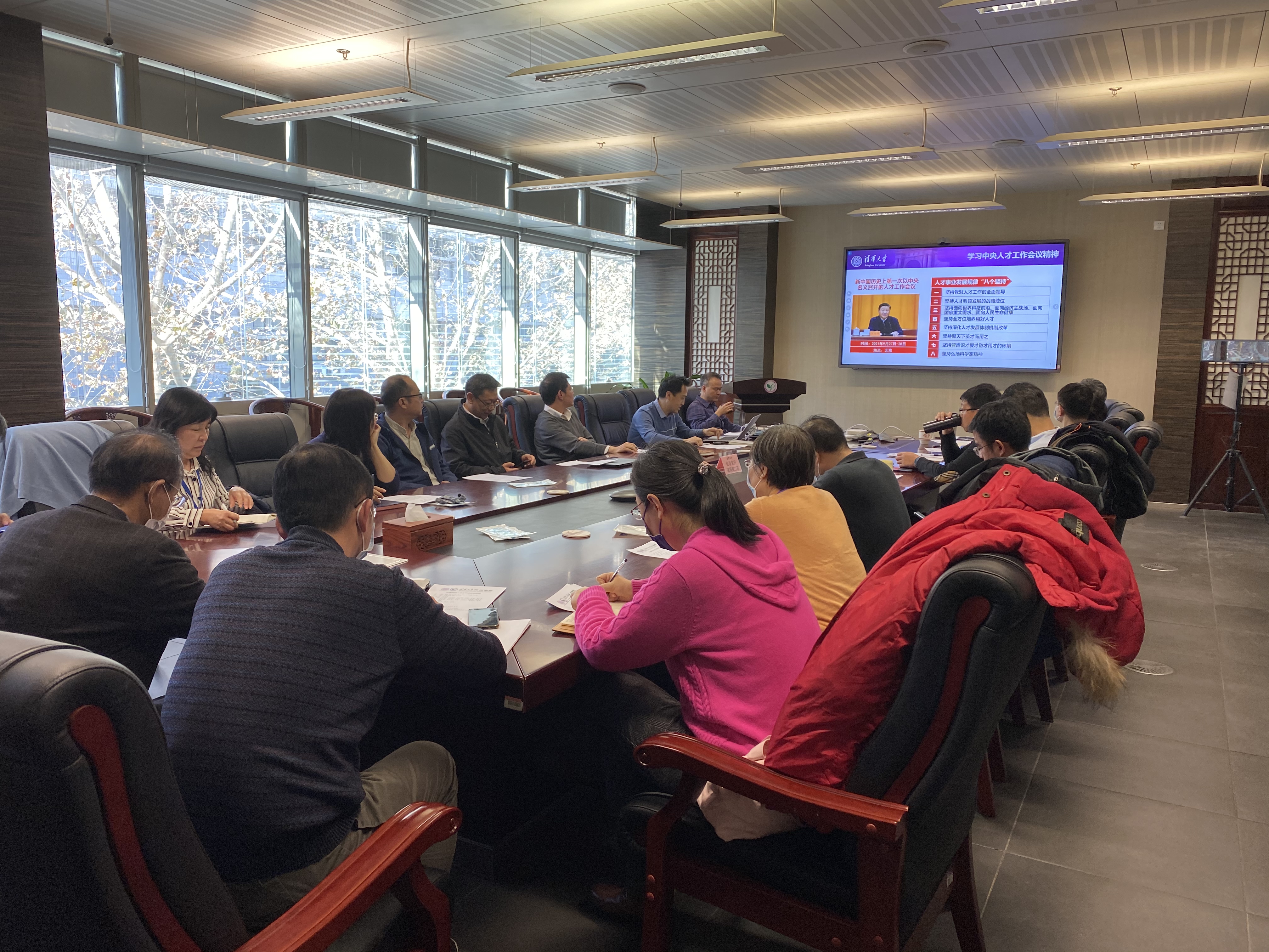 首先,刘书明传达了中央人才工作会议、十九届六中全会和学校人才工作会议的重要精神。他表示,习近平总书记在中央人才工作会议上的重要讲话,为学校和学院人才工作提供了科学指引和根本遵循,我们要深入学习领会会议精神,进一步落实人才强校核心战略。吴静介绍了学校专业研究人员管理办法。与会教师围绕专业研究人员政策实施中可能遇到的问题、如何为专业研究人员创造更好的科研环境、如何建设一支开放高效和充满活力的高水平专职研究队伍等主题进行了深入讨论。