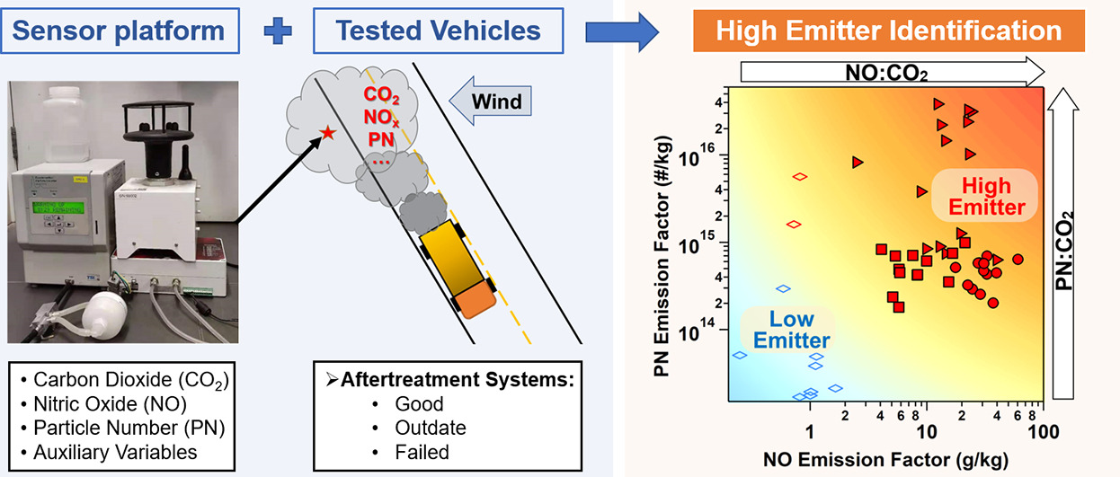 高排放机动车的识别和监管是移动污染源精准防控的关键。道路机动车尾气气团扩散快、稀释后浓度低,道路监测对仪器响应速度和精度均有较高要求。现有高排放车辆识别技术主要依赖于大型仪器设备,成本高、操作繁琐,难以大规模应用。研究组针对高排放车辆识别的难点,研发了一套基于传感器和便携仪器的道路边监测微站和大数据分析方法。该微站体积小、成本低、便捷性高,适于大规模组网应用。道路边测试结果表明,微站能够对高排放车辆进行有效识别,响应迅速,所识别的排放特征准确、与大型仪器测量结果有较好的一致性。研究成果以“Evaluation of a cost-effective roadside sensor platform for identifying high emitters”为题发表于《Science of The Total Environment》上,论文的第一作者为环境学院博士后沈毅成,通讯作者为蒋靖坤。论文合作单位包括中国环境科学研究院机动车排污监控中心和中国汽车技术研究中心有限公司。