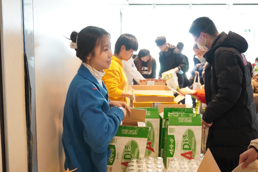 现场为志愿者发放慰问品