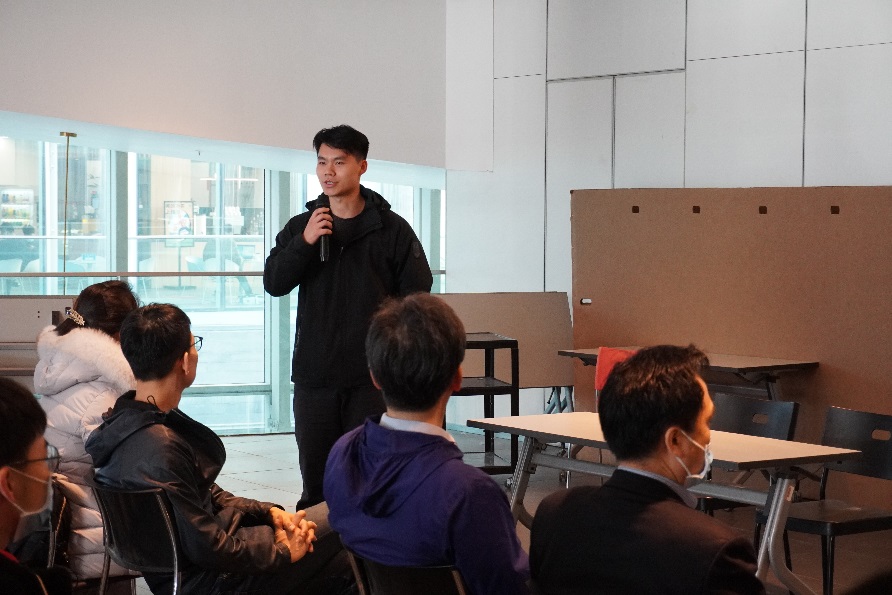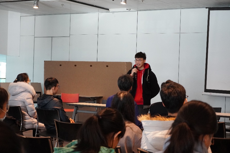 环博21级研究生王智慧代表校内保障志愿者分享了自己的感受。“兵马未动,粮草先行”,为了让志愿者们能够顺利完成各自的工作,后勤保障是很重要的。他希望自己的工作可以减轻志愿者们的负担,他认为以这种方式参与到冬奥的服务工作当中同样是很荣幸的。