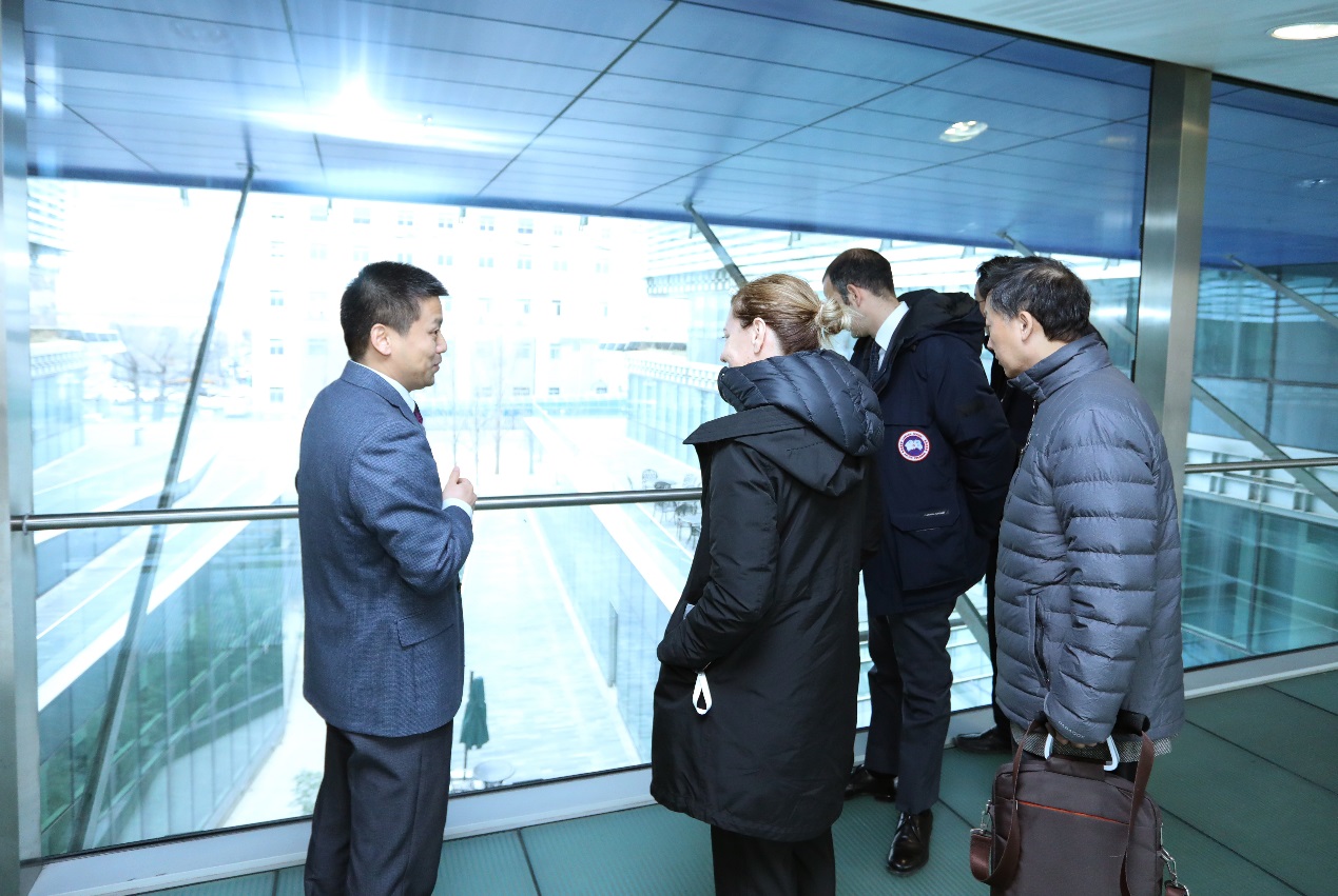座谈前,岳东北陪同代表团参观了中意清华环境节能楼。这座由中意两国政府共同建设,融绿色、生态、环保、节能理念于一体的智能化教学科研办公楼于2006年落成,主要用于环境学院的教学、科研和办公,同时也为中意两国在环境能源方面进行合作提供了交流平台。