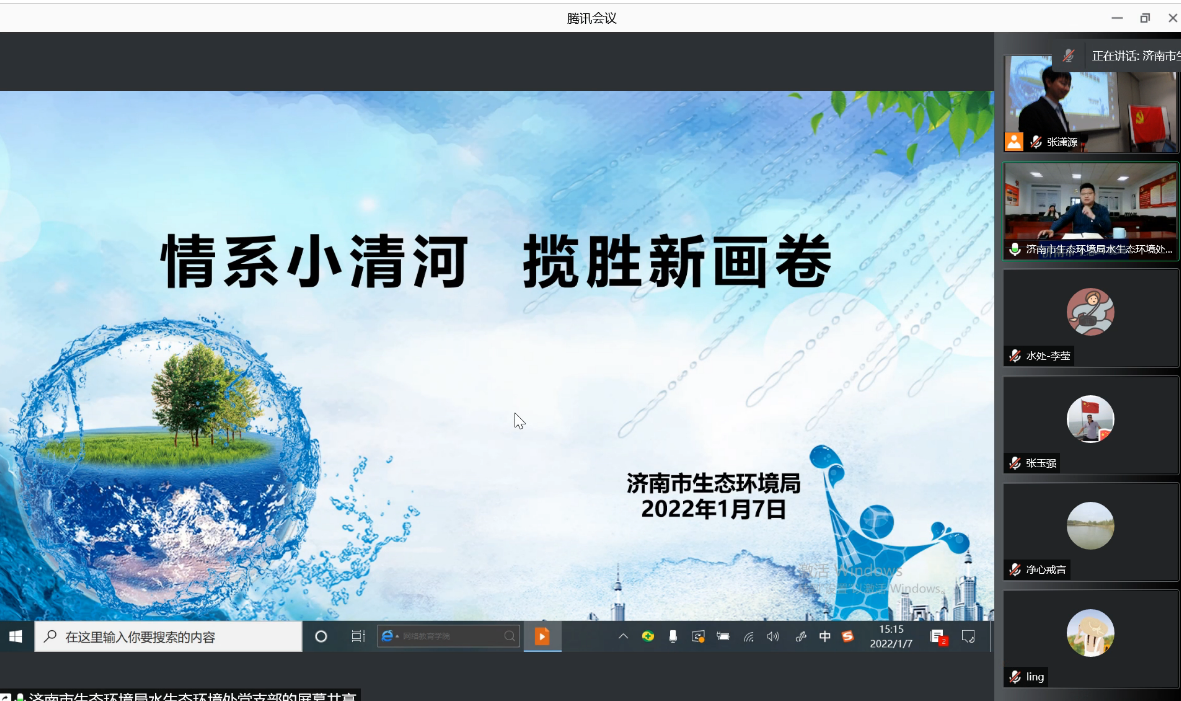 首先,张潇源从支部概况与建设、思想政治与党史学习、主题党日与组织生活等方面总结了支部2021年度情况,向济南市生态环境局水生态环境处党支部同志介绍了水环境所党支部学习党的伟大精神、从党史学习看个人成长、中共党史研究学习、清华党组织的光荣传统等党史学习内容及体会,分享了2021年度水环境所党支部党建与中心工作相融合、与相关业务单位党支部开展联合共建活动的经验等。