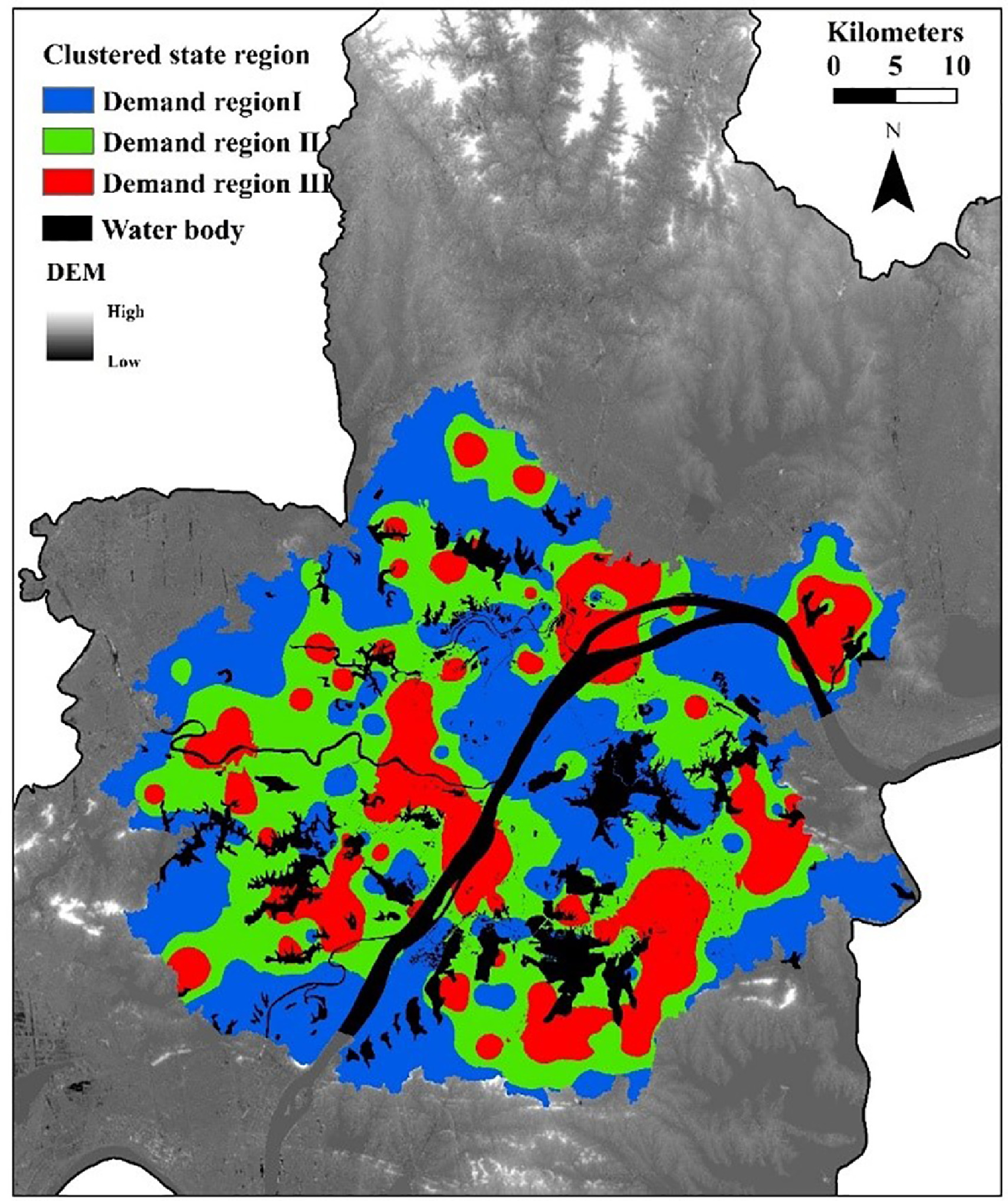 图5 不同调控需求区域的地理分布