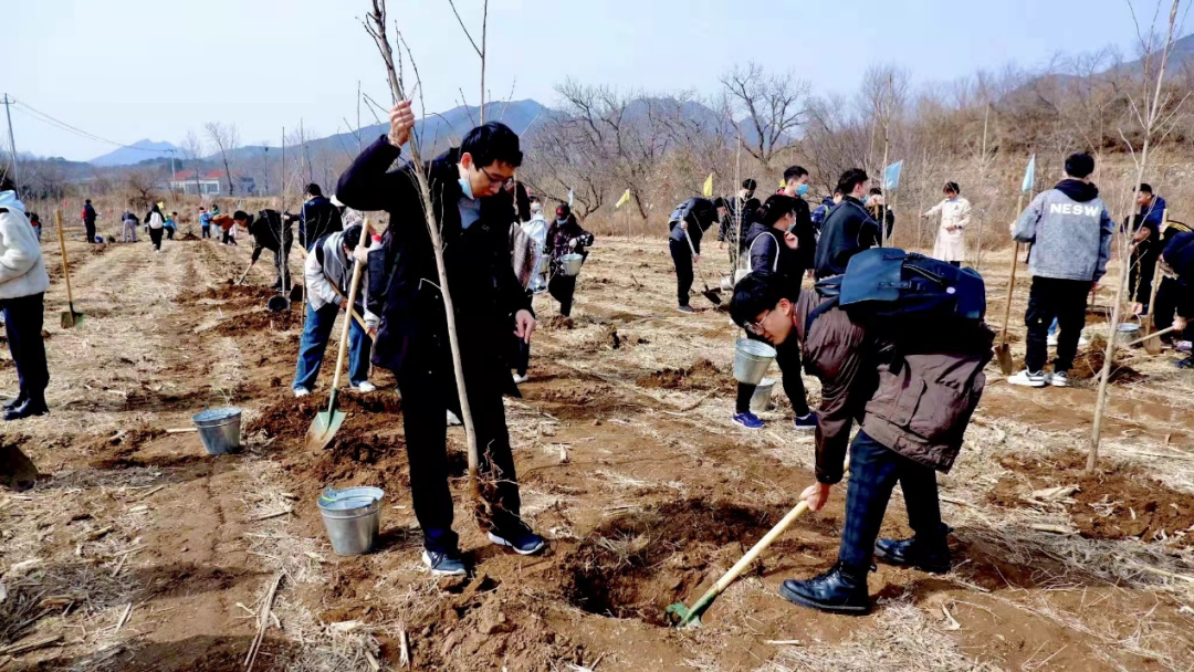 此次活动栽种的树苗由位于天津的抚育基地培育,经同学们种下后交由植树基地继续抚育1-2年,之后将被移栽到市内公园、道路旁参与绿化。同学们选定植树位置后立刻开工,经过挖坑、回填、栽植、覆土保墒等步骤,一棵棵小树苗被精心树立在京郊的土地上。广阔的田野上铁锹翻动、人影穿梭,同学们在短时间内高效履行了植树义务。
