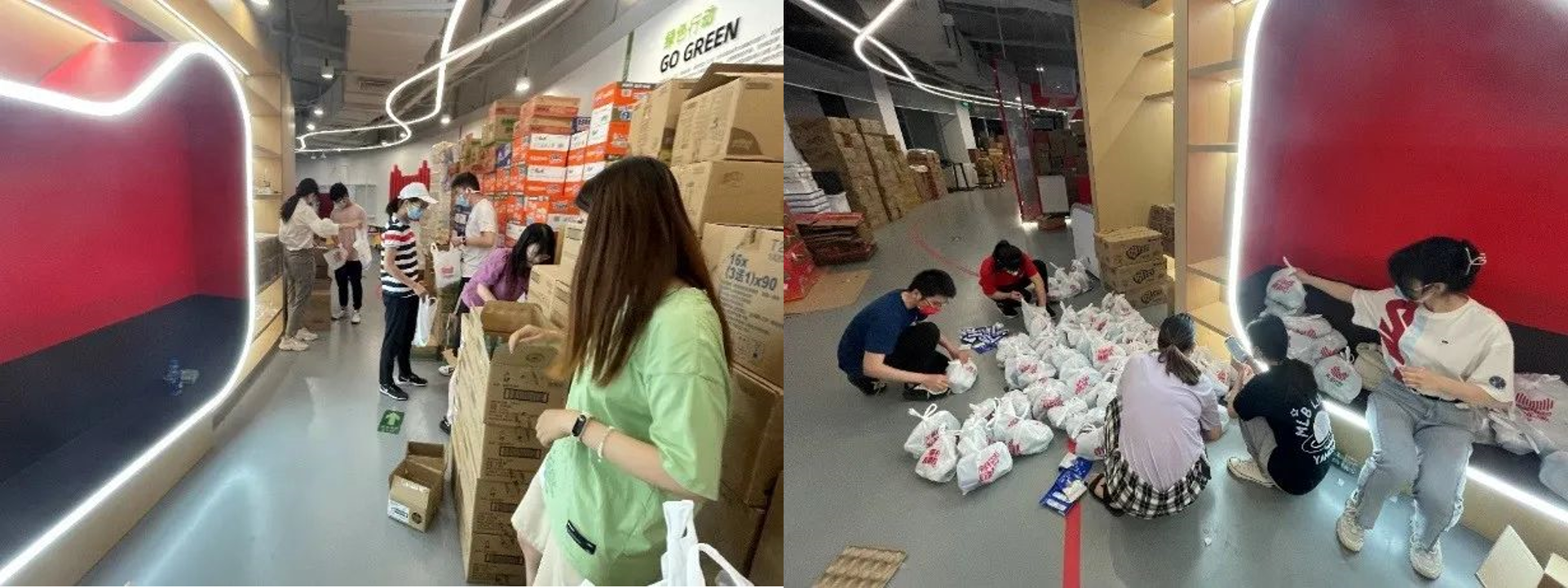 下午4点,第二批200多份礼包运送至紫荆宿舍4号楼和6号楼楼下,向在校本科生同学发放。